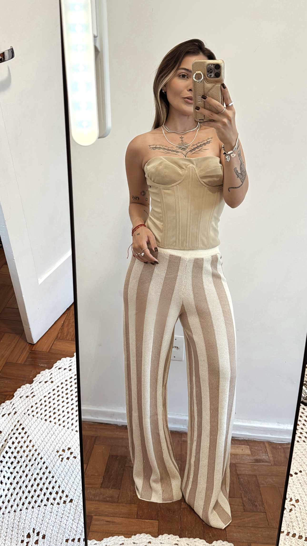 Calça em tricot com cós de amarrar para ajustar