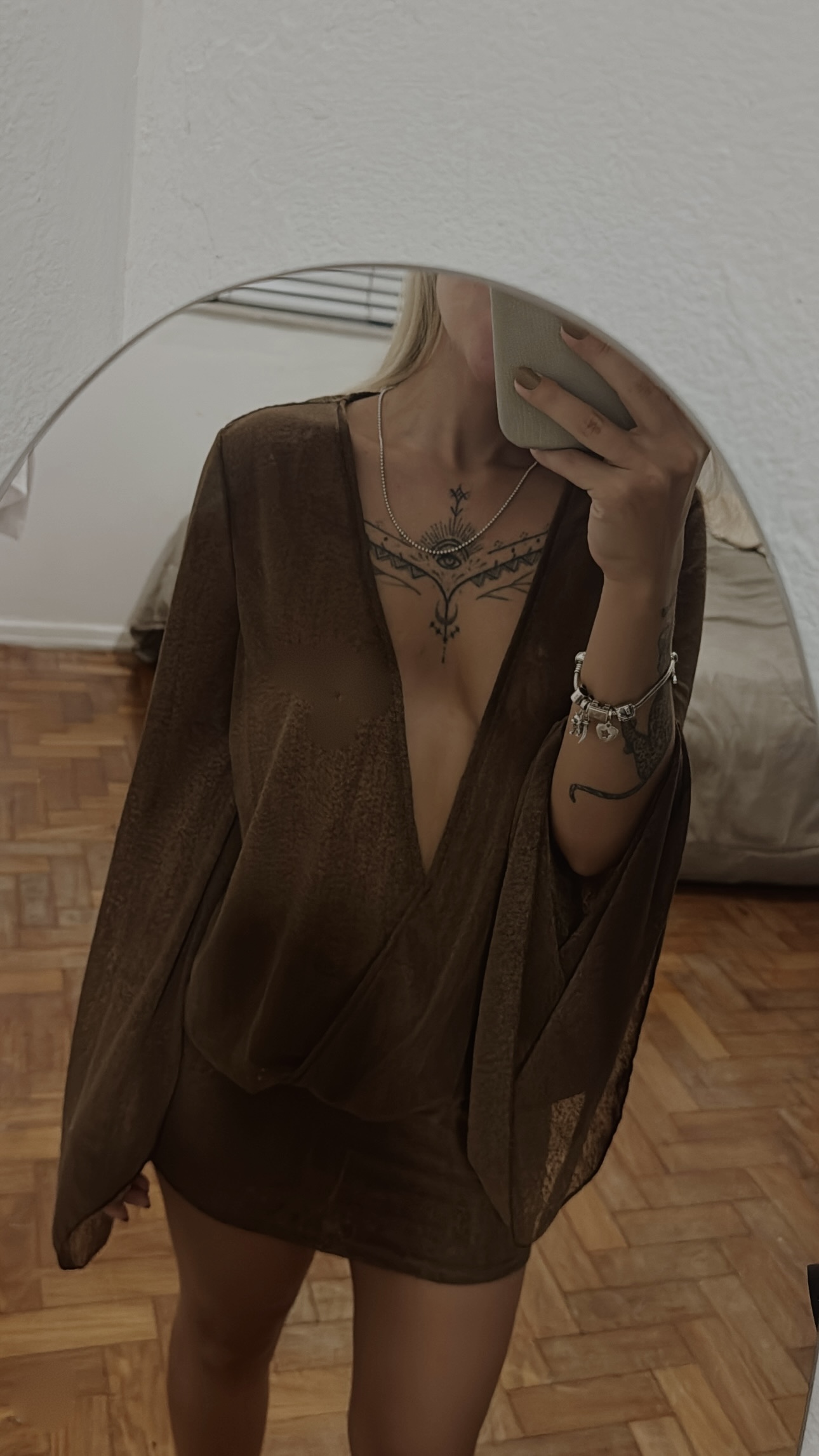 Vestido em tecido fluido, como um tule. Parte da saia forrada.